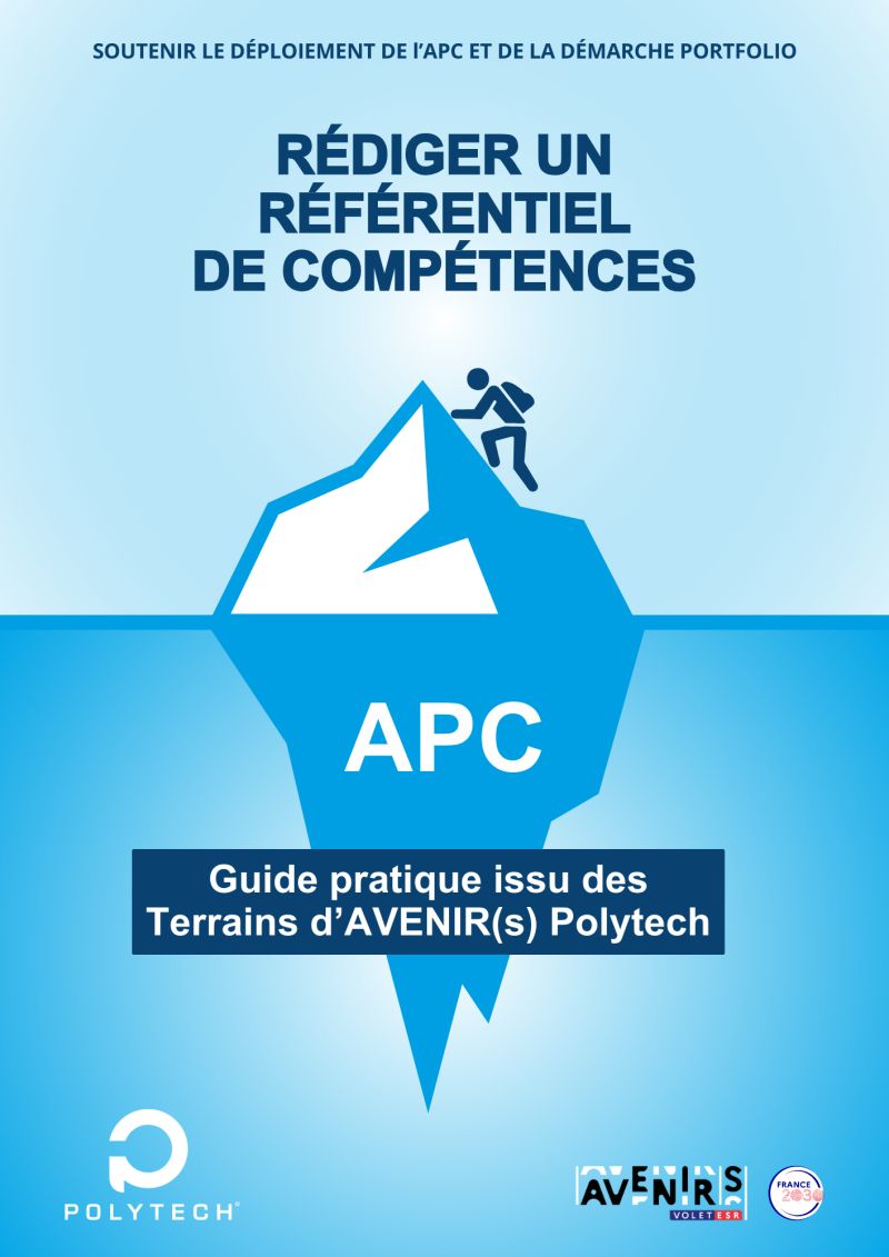 Ce guide propose de contribuer à ce contexte à partir de retours d’expérience pour répondre à certaines difficultés que les équipes peuvent rencontrer lors de la mise en œuvre de l’APC. Ce guide a vu le jour dans le cadre du programme AVENIR(s) France 2030 et s’inscrit dans son action 1 qui vise à soutenir l’accompagnement au déploiement de l’APC et de la démarche portfolio au sein de l’enseignement supérieur français. Il a été rédigé à partir des retours d’expérience des premiers Terrains d’AVENIR(s) (TA) Polytech engagés dans la démarche, ainsi que deux autres spécialités ayant accepté de partager leur expérience. Nous les en remercions chaleureusement. Ce guide s’adresse aux équipes pédagogiques qui sont impliquées dans la démarche APC et qui rencontreraient les mêmes difficultés que les terrains d’AVENIR(s) Polytech. Les éléments présentés seront donc issus d’un contexte ingénieur mais pourront intéresser d’autres équipes de l’enseignement supérieur cheminant vers l’APC.
